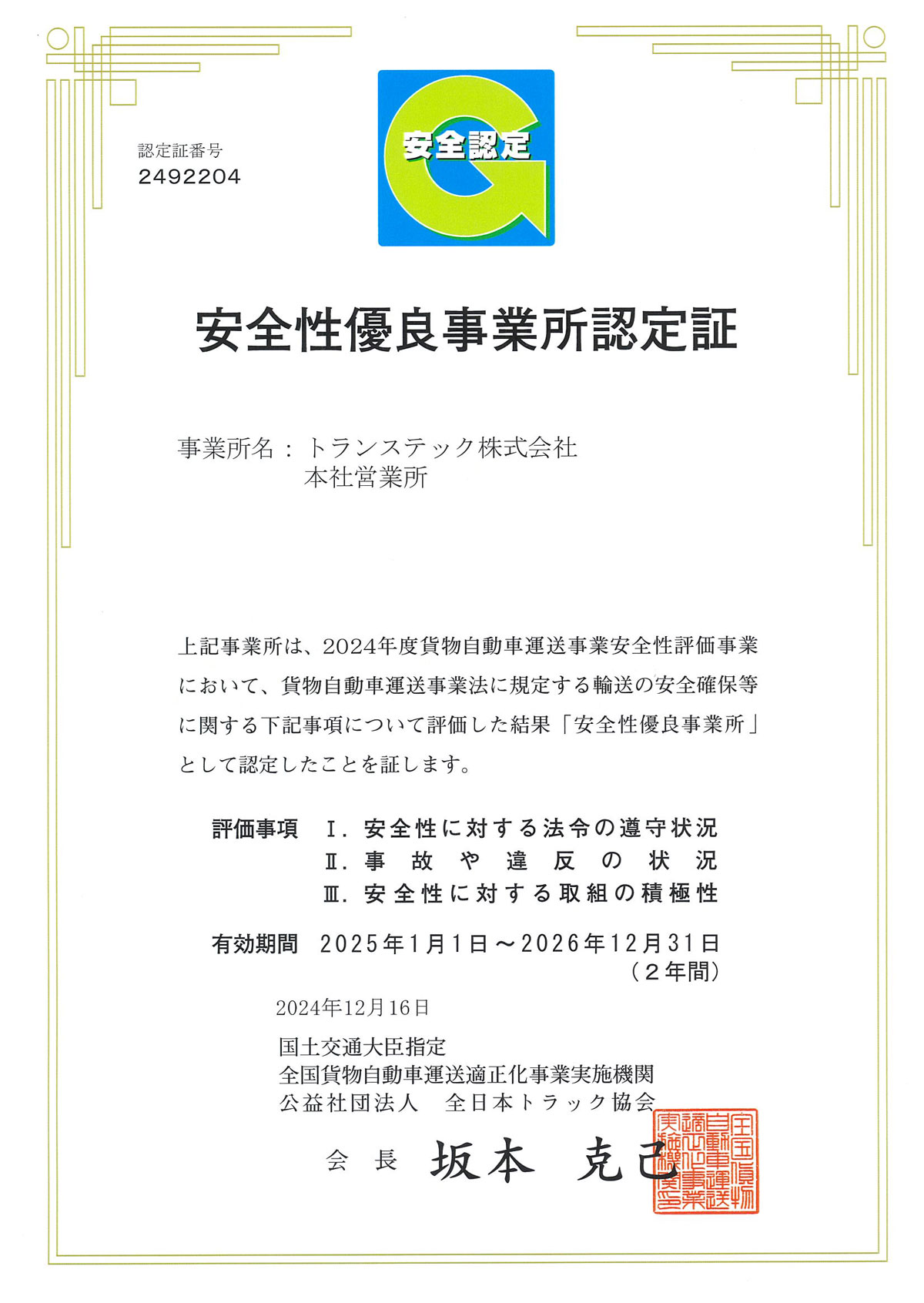 トランステックの運行に供する22両の特注低床フル積載3軸トレーラー(30.48ton積載)は通常の3軸トレーラーに比して約25cm荷台高が低い。