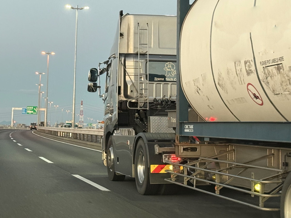 地上高を極限まで低くした液体輸送専用の3軸低床トレーラーはトランステックの特注車両です。